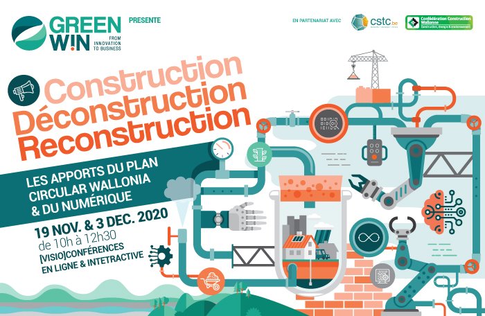 La 2ème édition de la Conférence Construction de GreenWin, organisée en partenariat avec le CSTC et la CCW, aura lieu en deux sessions digitales, les 19 novembre et 3 décembre prochains de 10h à 12h30, afin de prendre en compte les restrictions et contraintes sanitaires imposées par la lutte contre le COVID19.